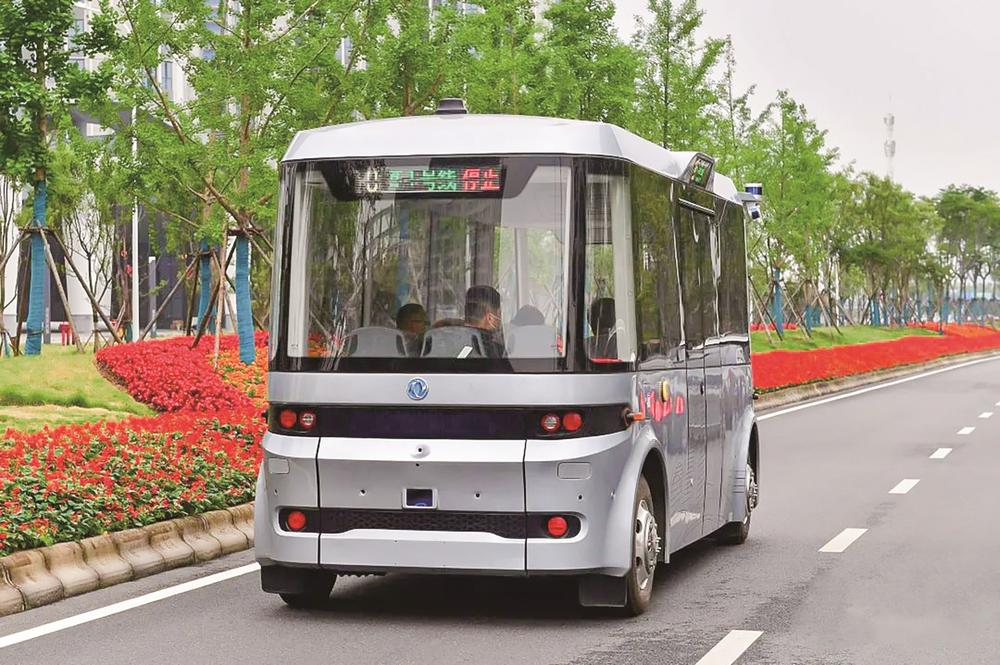 在这里,人们常能看到一辆辆黑色的无人驾驶巴士行驶在经开大道上,车身印着武汉的地标建筑黄鹤楼和“春笋”。开到16号线小军山地铁站后,巴士缓缓停在公交区域,将乘客安全送达。